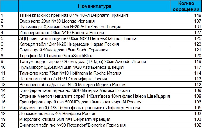 20 топ-позиций аптечного ассортимента, наиболее востребованных при аптечных заказах через торговую площадку (по обращаемости) по региону СПб и ЛО. Период 08 - 14 декабря 2025г