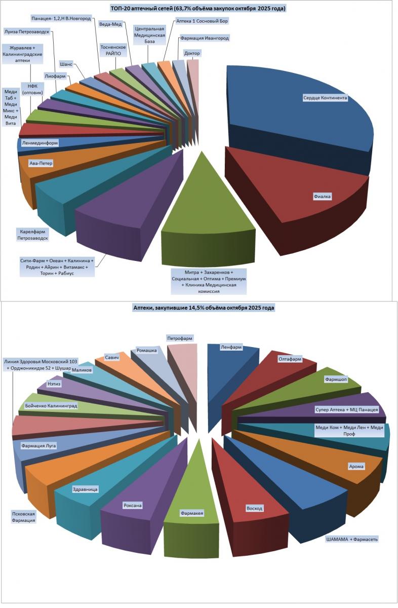 Данные по объему и структуре продаж за октябрь 2025г. (по аптекам)