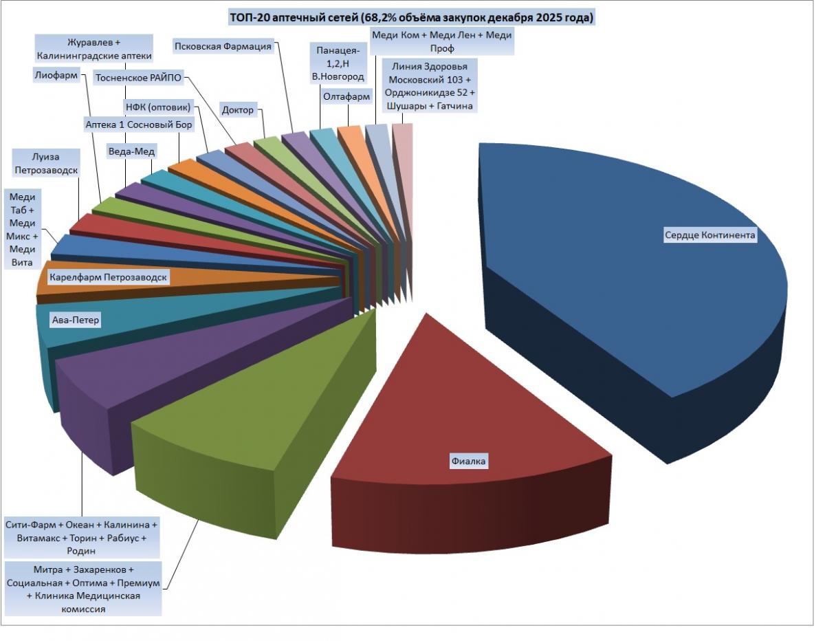 Данные по объему и структуре продаж Медлайна за декабрь 2025г