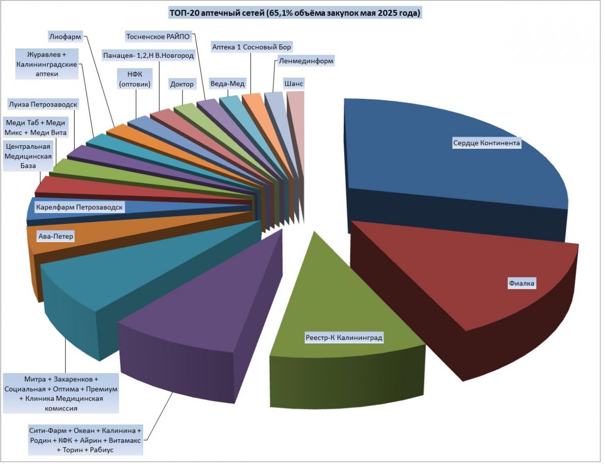 Данные по объему и структуре продаж Медлайна за май 2025г