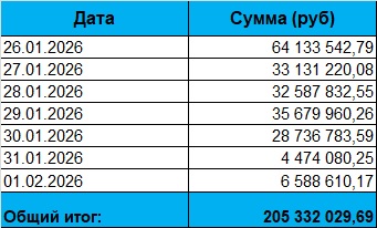 Статистика Медлайна за 26.01 - 01.02.2026г