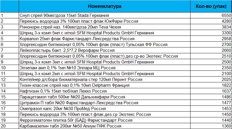 20 топ-позиций аптечного ассортимента, наиболее востребованных при аптечных заказах через торговую площадку (кол-во, уп.) по региону СПб и ЛО. Период 19 - 25 января 2026г