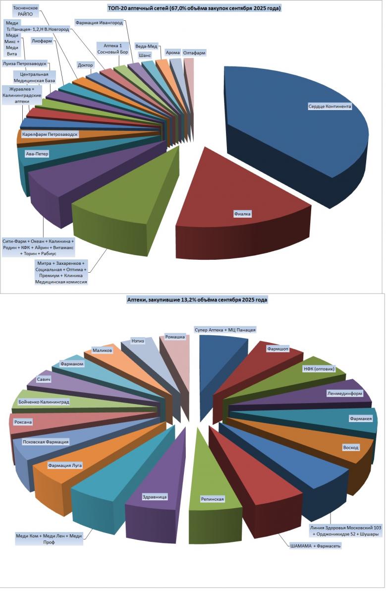 Данные по объему и структуре продаж за сентябрь 2025г. (по аптекам)